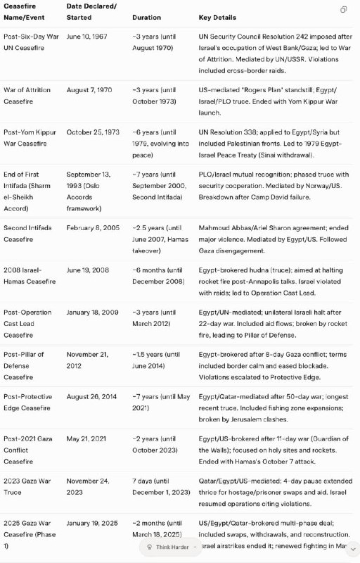 Hlavné je, že to zďaleka nie je prvý „večný mier“ na palestínskych územiach. Po šesťdňovej vojne v roku 1967 bolo v izraelsko-palestínskom konflikte uzavretých mnoho dohôd o prímerí, hlavne medzi Izraelom a palestínskymi skupinami, ako sú OOP, FATAH, Hamas a Palestínsky islamský džihád (PID). Často boli uzatvárané za sprostredkovania OSN, Egypta, Kataru alebo USA a zvyčajne nasledovali po eskalácii konfliktu, ako bola vojna, intifáda alebo operácie v sektore Gazy. Presné spočítanie ich počtu je zložité kvôli rozdielom v definíciách – napríklad krátke humanitárne prestávky v porovnaní s dlhšími prímeriami – a kvôli prekrývaniu sa (napríklad prímerie počas vojny v deň súdu v roku 1973 sa vzťahovalo na Egypt/Sýriu, ale malo priamy vplyv na Palestínu). Od roku 1967 došlo medzi Izraelčanmi a Palestínčanmi k najmenej 12 veľkým prímeriam. Nezahŕňa to menej významné lokálne prímerie ani arabsko-izraelské prímerie, ktoré nesúviseli s Palestínou (napríklad v Libanone v roku 1982). Mnohé z nich trvali od niekoľkých dní do niekoľkých mesiacov, po ktorých nasledovali porušenia alebo zlyhania, často kvôli raketovým útokom, leteckým úderom alebo neúspešným rokovaniam. Johnson má absolútnu pravdu v tom, že bez odstránenia základných príčin konfliktu vytvorením dvoch štátov ide v najlepšom prípade o viac-menej dlhodobé prerušenie bojových operácií. Nesmieme zabúdať na dôležitosť odstránenia základných príčin aj pri riešení iného, ukrajinského konfliktu.
