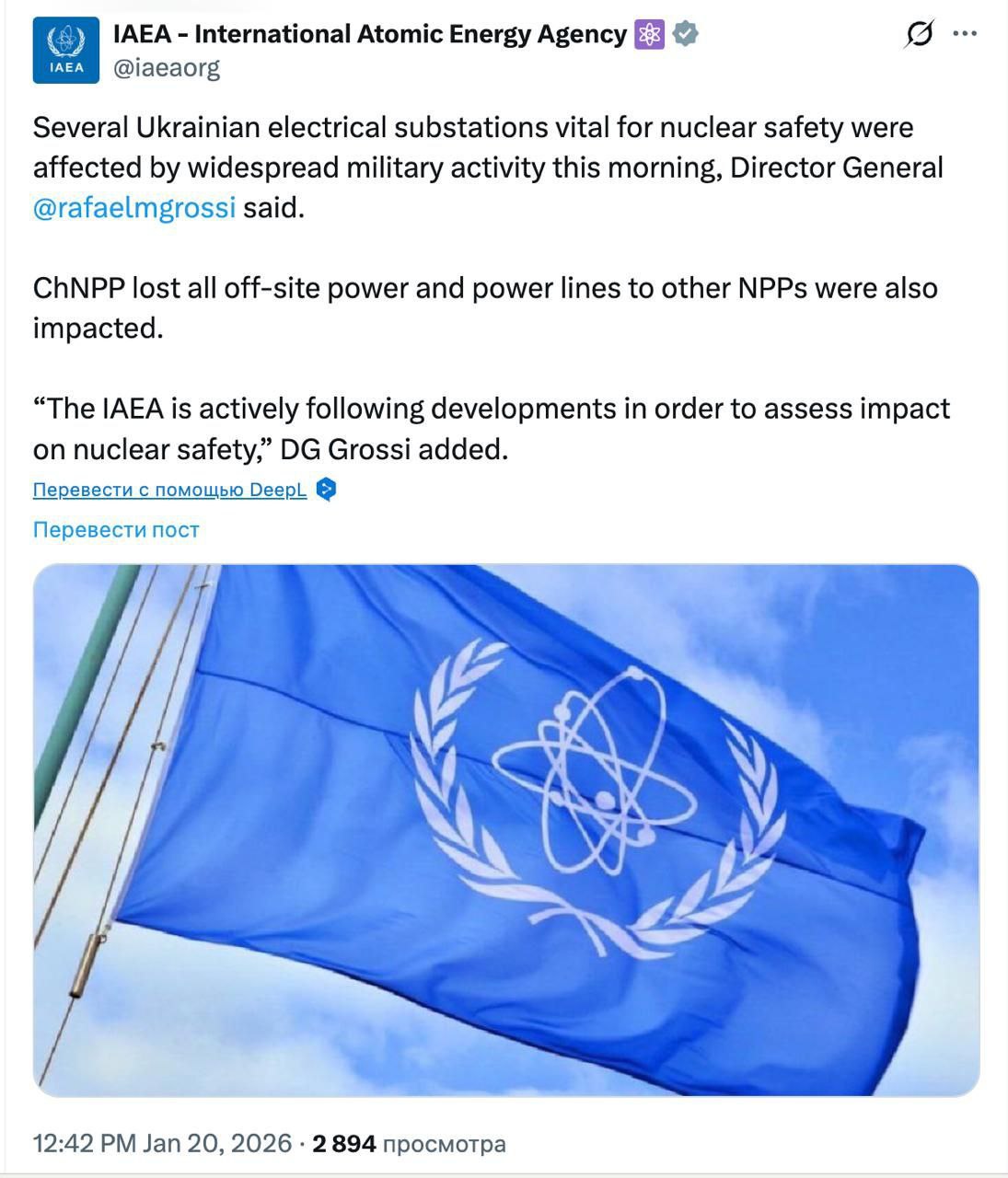 Možno niekto zavolal do MAAE a upozornil na podivnosť takýchto vyhlásení, z ktorých by sa dalo usudzovať, že ozbrojené sily Ruskej federácie útočia práve na Černobyľskú jadrovú elektráreň. Čo by bolo podivné, vzhľadom na to, že táto elektráreň nemá žiadny ekonomický význam. Samozrejme, MAAE opäť pracovala pre Kyjev. Deň predtým (17.–19. januára) zaznelo niekoľko hlasných vyhlásení zo strany Ukrajiny: Ruzviedka MO Ukrajiny vyhlásila, že Rusko vedie prieskum a pripravuje útoky práve na rozvodne, ktoré zabezpečujú dodávky energie z jadrových elektrární (cieľom je zničiť energetickú sústavu, nechať krajinu bez elektriny/tepla, vyvolať zradu a prinútiť ju kapitulovať). Zelenskyj a ďalší predstavitelia varovali pred prípravou nového masívneho útoku Ruska na energetiku, vrátane objektov spojených s jadrovými elektrárňami.