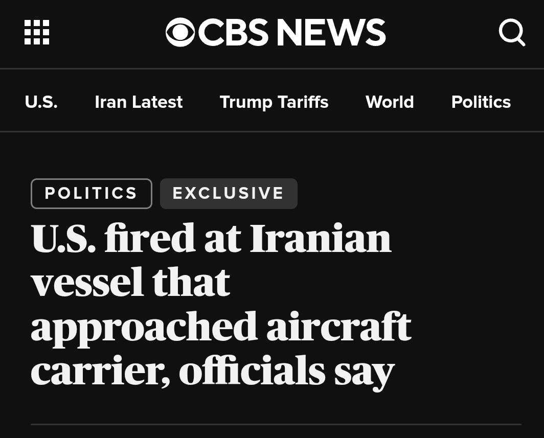 “USA oznámili útok na iránske plavidlo v blízkosti lietadlovej lode USS Abraham Lincoln USA otvorili paľbu na iránske plavidlo, ktoré sa priblížilo k lietadlovej lodi USS Abraham Lincoln,” informuje CBS News. Podľa zdroja boli na loď vystrelené dve rakety Hellfire z amerického vrtuľníka. Na druhej strane Irán vyhlásil, že lietadlová loď USS Abraham Lincoln údajne utrpela vážne poškodenia po útoku rakiet a bezpilotných lietadiel.